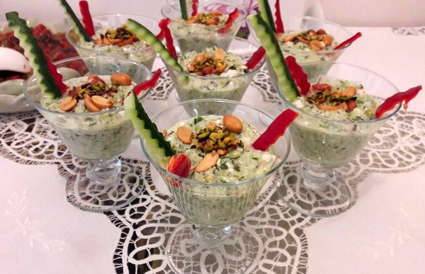 Yıkanmış Salatalıkları kabukları ile birlikte rendeleyin. Soğanı da rendeleyip acı suyunu atın. Salatalıklara soğanı ,lor peynirini, limon suyu, zeytin yağını ,tuz ve baharatları ilave edip dövercesine karıştırın. Hafifi kavrulmuş yer fıstıkları ile dövülmüş Çam fıstıklarının yarısını ilave edin ve tekrar iyice karıştırın.Servis edeceğiniz salata tabağına koyun üzerine de ayırdığınız çam fıstıkları ve yer fıstıkları ile süsleyip ister benim sunduğun gibi kadehlerde ister kaselerde ister salata tabağında servis yapın.